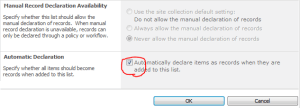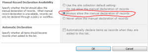 Go back into the Record declaration settings since the Manaual Record Declaration Availablity section will now be enabled. Choose Always allow the manual declaration of records: