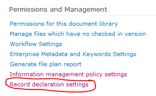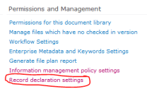 Go to your Library Settings for your Record Library. Under Permissions and Management choose Record declaration settings: