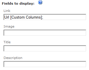 In the Fields to display section enter Url [Custom Columns]; for the Link and remove the Title entry: