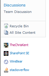 It’s not too bad, especially for a simple team site. But with just a little extra work you can have that same list of links display with their favicons and you can move them to some relatively unused real estate – under the QuickLaunch, and on every page in your site.
