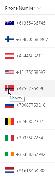 We are checking to see if the remainder of dividing the @rowIndex by 2 is 0 (even numbers will be 0 and odd numbers will be 1). When it’s 0, we use the UI Fabric theme classes to apply a theme color across the whole row. We also add an additional class to add a hover effect as well. Here’s the result: