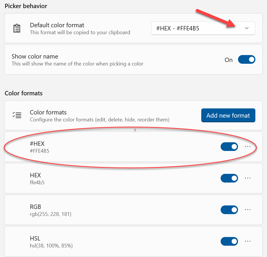 By default, the Color Picker returns the Hex value of the code and copies it to your clipboard. If that’s what you’re looking for, awesome!