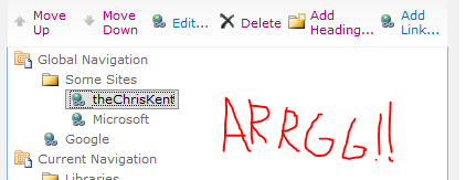 So even though we made the correct change to the control we have no native way to edit these sub menus. Fortunately this can be done with PowerShell (Or just plain .NET) which will be the subject of the next post. However, this is a necessary first step towards Multi-Level Top Bar Links.