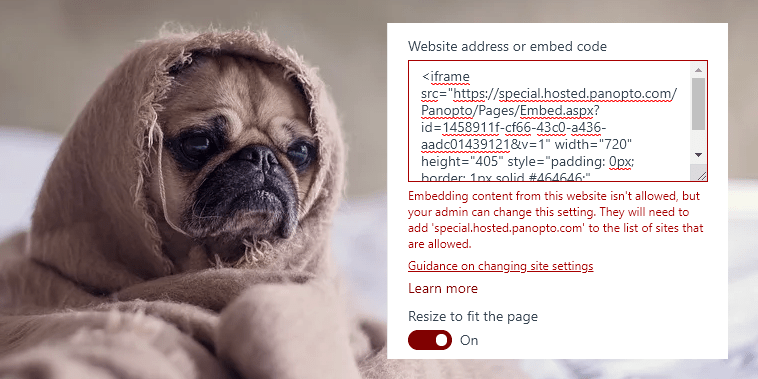 By default, modern pages support 30+ sites including the most common like YouTube, Vimeo, TED, and internal domains like Stream and OneDrive. But what about when you’ve got content from a site not on this list? You’ll end up with an error similar to this: